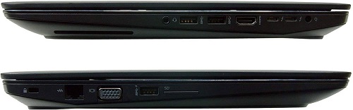 - Cạnh trái máy có: cổng Ethernet, VGA, USB 3.0, khe cắm thẻ nhớ SD.